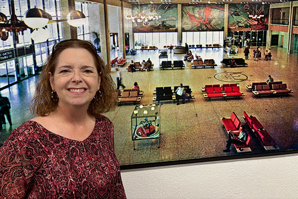 Asset Management and Sustainability Programs Administrator Jennifer M. has worked at Phoenix Sky Harbor Airport for 29 years. Her first memory of the airport is arriving at Terminal 2 (in the photo behind her) as a 10-year-old for a visit with her family, walking down from the plane onto a warm airfield.