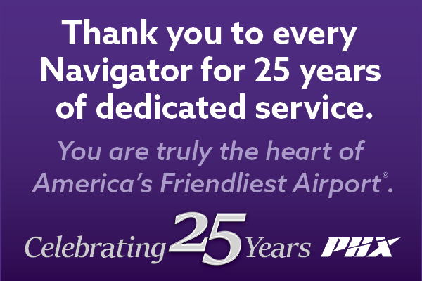 Whether offering directions, dining suggestions, travel information, or simply a friendly conversation, we invite you to share your experience and thank a Navigator who made your airport visit easier and more welcoming. While our Navigators always appreciate an in-person thank you, you can also share your message by emailing us at navigator.staff@phoenix.gov or by using #ThxPHXnavigator on social media.