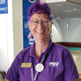 We are proud to highlight some of our most dedicated and inspiring volunteers. While they all share a warm and welcoming presence in their signature purple at the airport while helping travelers with directions and information, each has volunteered for more than 20 years.