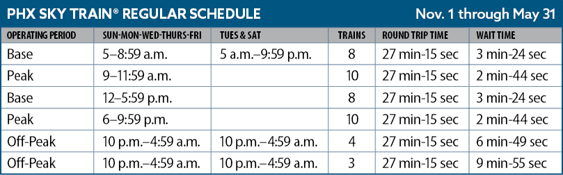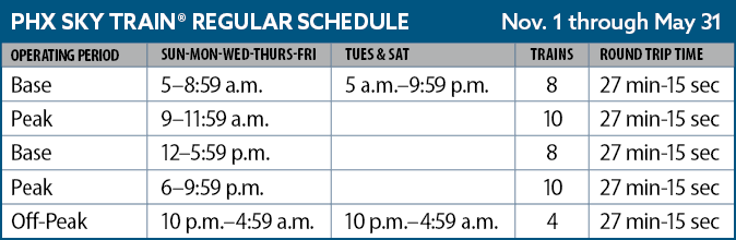 PHX SKY TRAIN® HOURS of OPERATION are 24/7