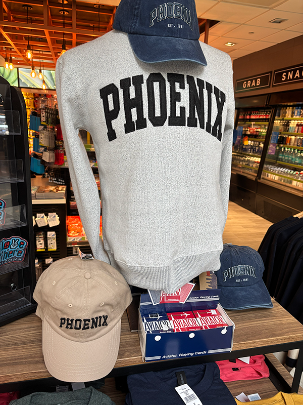 Let’s say you want to grab a souvenir before flying home to visit the parents. Let’s say you forgot to get grandmom a gift before heading to the airport. Let’s say you’re just not good at planning to get gifts. Luckily, any shop at the airport can be a gift shop if you’re determined enough. And flying through PHX, these pullover sweaters and ballcaps literally scream “Phoenix,” which makes them ideal gifts for reminding folks (your “folks” and others) the sunny place you’re flying back to after the holidays are over.