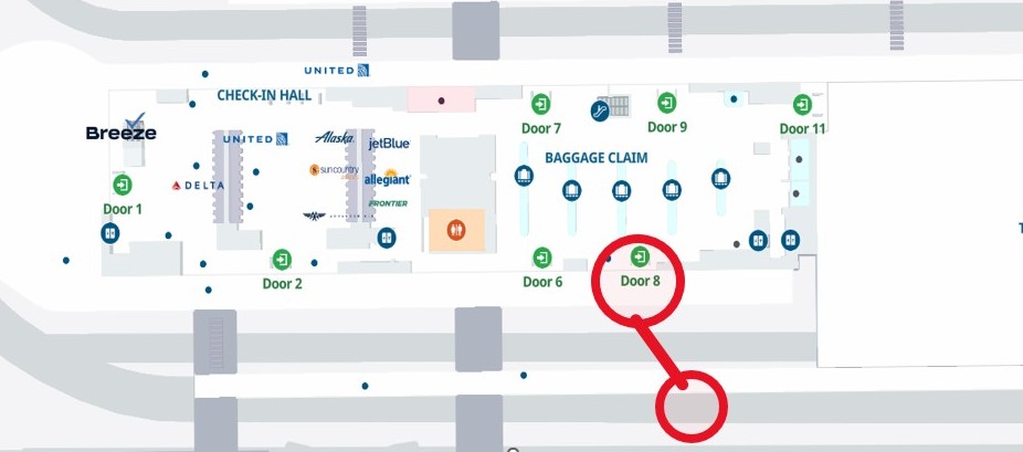 - Pick-up and Drop-off locations for Terminal 3 are located on the South outer curb East of door 8 in the Charter zone.