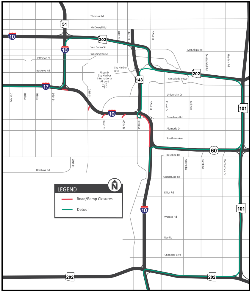 This page will be continuously updated to include information on current Sky Harbor related roadway restrictions.