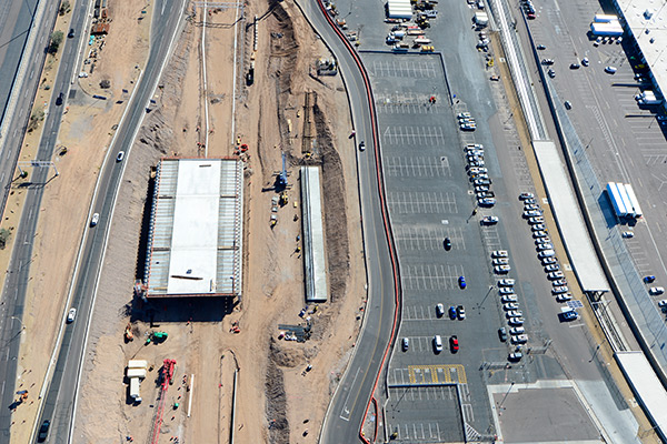 As part of the project’s enabling construction phase, several major roadway modifications will begin to take shape in May, ultimately shifting all eastbound traffic on Sky Harbor Boulevard and Buckeye Road beneath the new taxiway bridge.