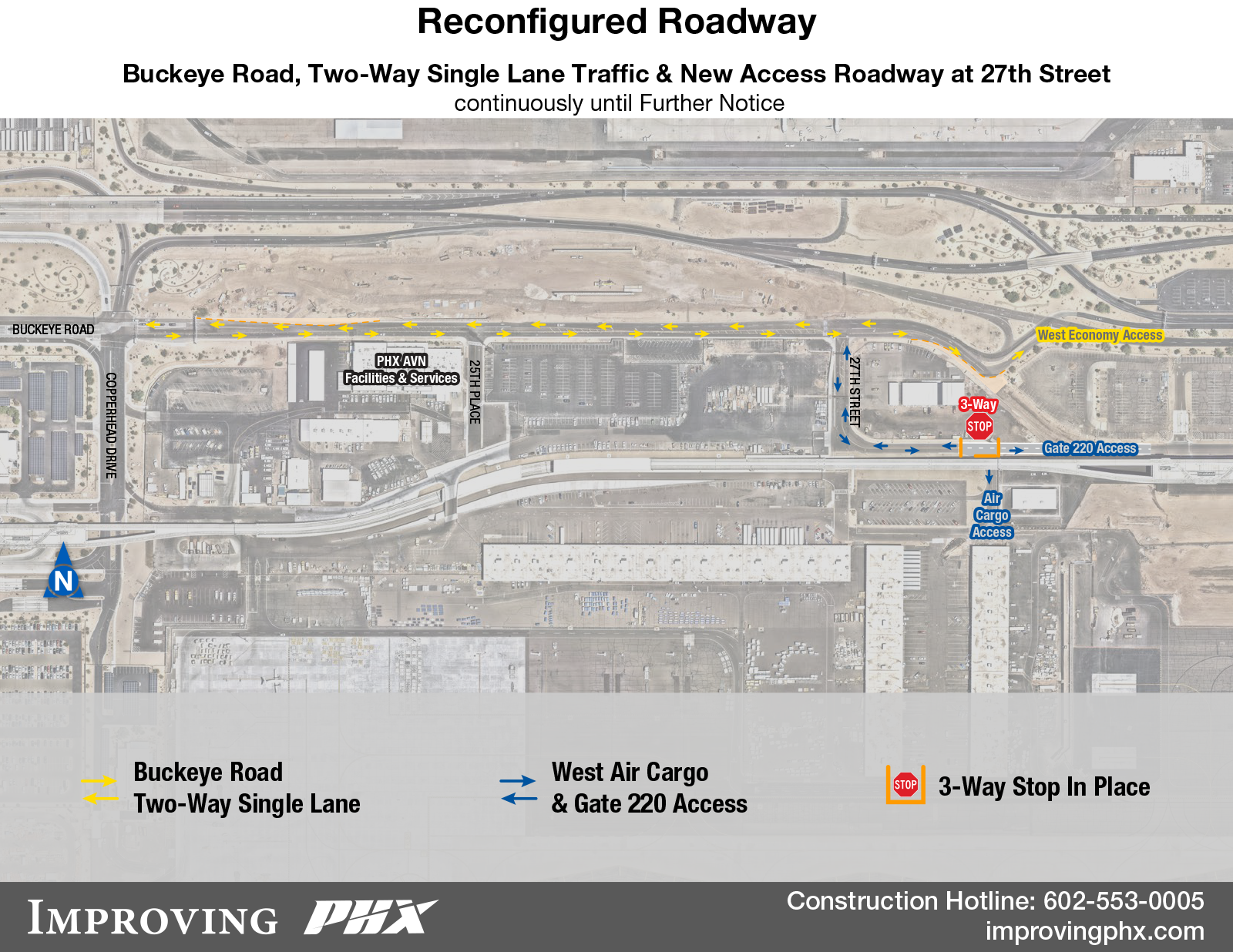 This closure is necessary for the Taxiway U project, which includes realigning Buckeye Road.